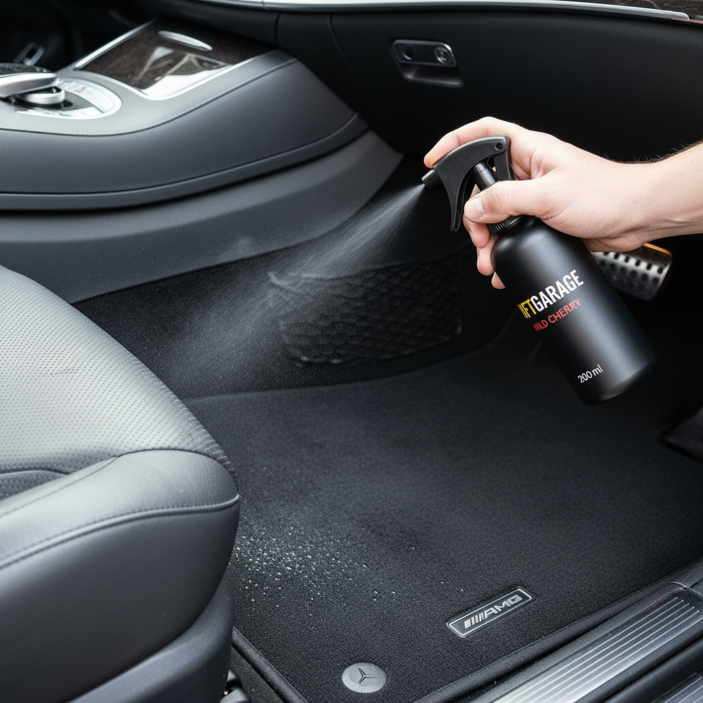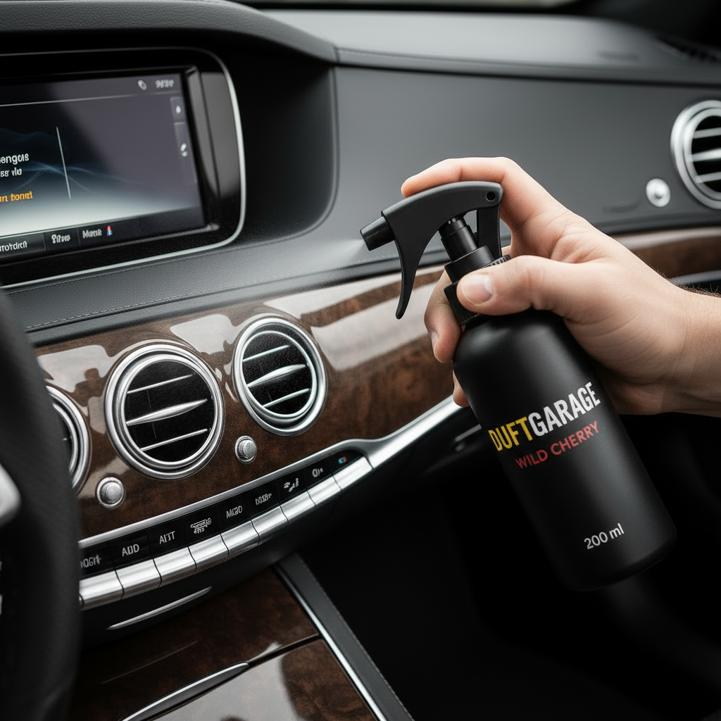 Am besten auf die Fußmatten oder kurz in die Klimaanlage sprühen. So verteilt sich der Duft optimal im gesamten Innenraum.