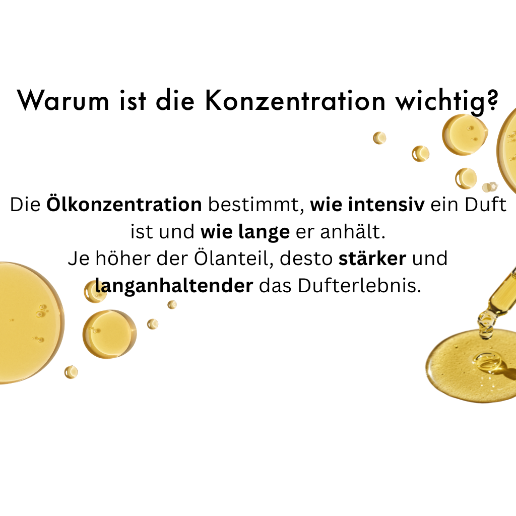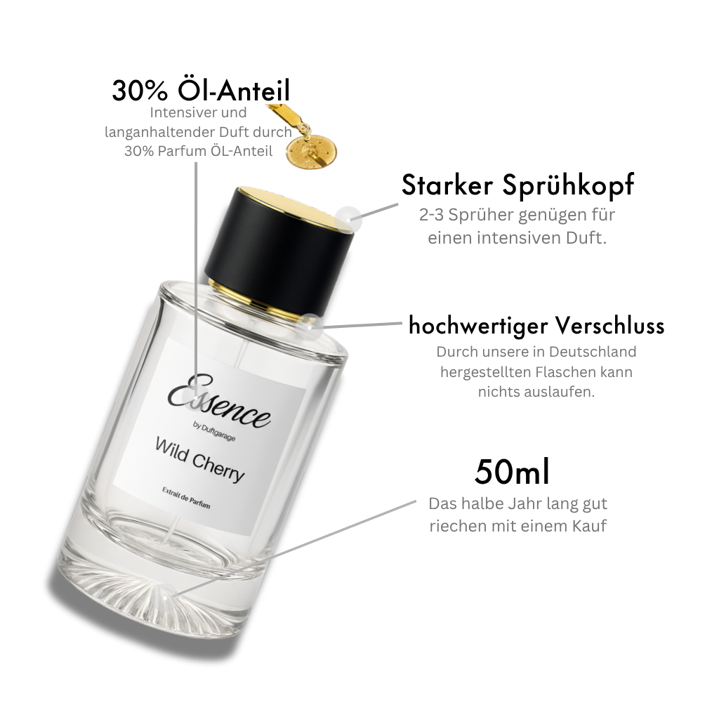 Durch 30 Prozent Duftölanteil und Extrait de Parfum Stärke hält der Duft in der Regel 8 Stunden und länger auf der Haut.
